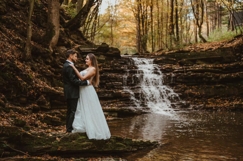 Jesienna sesja ślubna Moniki i Pawła nad wodospadem